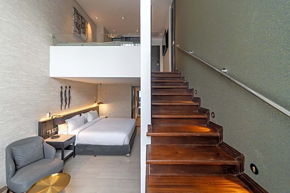 Loft Business Suite is ideal for the traveling executive; the split-level duplex features a dedicated workspace on the entry level and a separate bedroom below.
